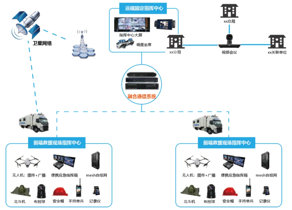 融合通信,信息傳遞更暢通:平臺(tái)整合有線、無線、衛(wèi)星等多種通信手段,構(gòu)建天地一體、全域覆蓋的應(yīng)急通信網(wǎng)絡(luò),確保指揮指令暢通無阻。