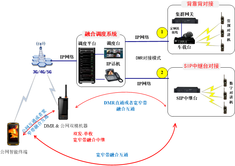 “2+4”寬窄帶融合對(duì)講調(diào)度系統(tǒng)將窄帶的此岸和寬帶的彼岸渾然一體地連在一起,系統(tǒng)包括融合調(diào)度平臺(tái)、DMR/PDT數(shù)字對(duì)講系統(tǒng)、LTE專(zhuān)網(wǎng)對(duì)講系統(tǒng)、3G/4G/5G公網(wǎng)對(duì)講系統(tǒng)、各種無(wú)線(xiàn)對(duì)講終端等全套設(shè)備,實(shí)現(xiàn)行業(yè)用戶(hù)現(xiàn)有常規(guī)對(duì)講、模擬/數(shù)字對(duì)講、3G/4G/5G公網(wǎng)對(duì)講、LTE專(zhuān)網(wǎng)對(duì)講的融合接入,實(shí)現(xiàn)跨系統(tǒng)的混合對(duì)講、互聯(lián)互通和集中指揮調(diào)度。